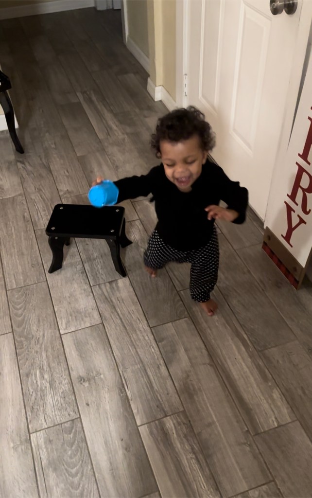 One of my absolute favorite moments! In early December, at 13 months old, my daughter Sahara decided to make her grand appearance as a walker. I love that I was able to experience this moment as I feared this would happen while she was away at daycare. Waiting for Sahara to walk felt like holding my breath. I know you’re not supposed to compare your child to others but it felt like all of my friends’ children were walking by 11 months. When Sahara’s first birthday past and she was not walking, I became concerned. But I should’ve known better! One thing about Sahara, she does what she wants, WHEN she wants, and now I can’t keep up with her!